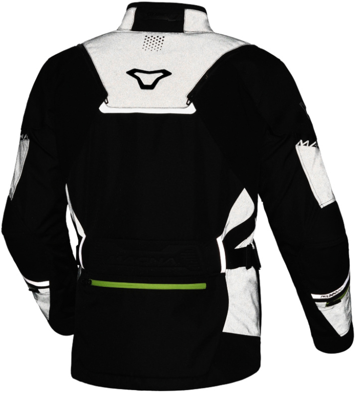 Met zoveel nadruk op het ‘Summer Comfort System PRO’ zouden we bijna vergeten dat de Macna Air Hybrid 2.0 Night Eye in zijn volledigste versie uitgerust is met een verwijderbaar Raintex ML-membraan en een verwijderbare thermovoering. Dit zijn eigenlijk drie jassen ineen, in plaats van een 3-in-1. Zeker omdat alles voorzien is om de aanwezige thermovoering te vervangen door een verwarmde Nucleo-jas, wat de breedte qua inzetbaarheid helemaal eindeloos maakt. Van de Noordpool tot de evenaar, het zal niet veel schelen.